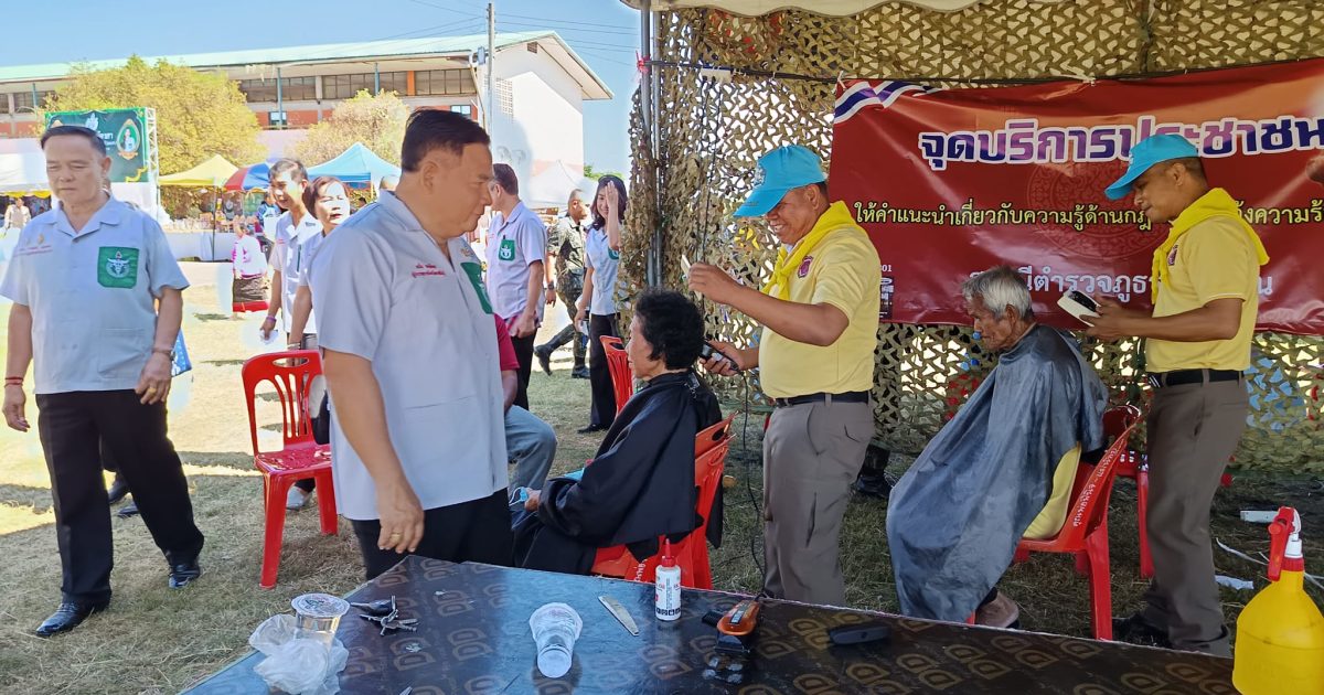 สภ.ดอนจาน 21 พ.ย.67 เวลา 09.00น. พ.ต.อ.สรกฤช ราชภักดี ผกก.สภ.ดอนจาน พร้อมด้วยชุ ชมส.สภ.ดอนจาน พนักงานสอบสวน และชุดสายตรวจและจราจร ออกให้บริการตัดผมฟรี และให้คำปรึกษาทางกฎหมายกับประชาชนที่มาใช้บริการ ตามโครงการ พอสว.และจังหวัดเคลื่อนที่ ณ โรงเรียนนาจำปา โดยมีนายสนั่น พงษ์อักษร ผู้ว่าราชการจังหวัดกาฬสินธุ์ เป็นประธาน