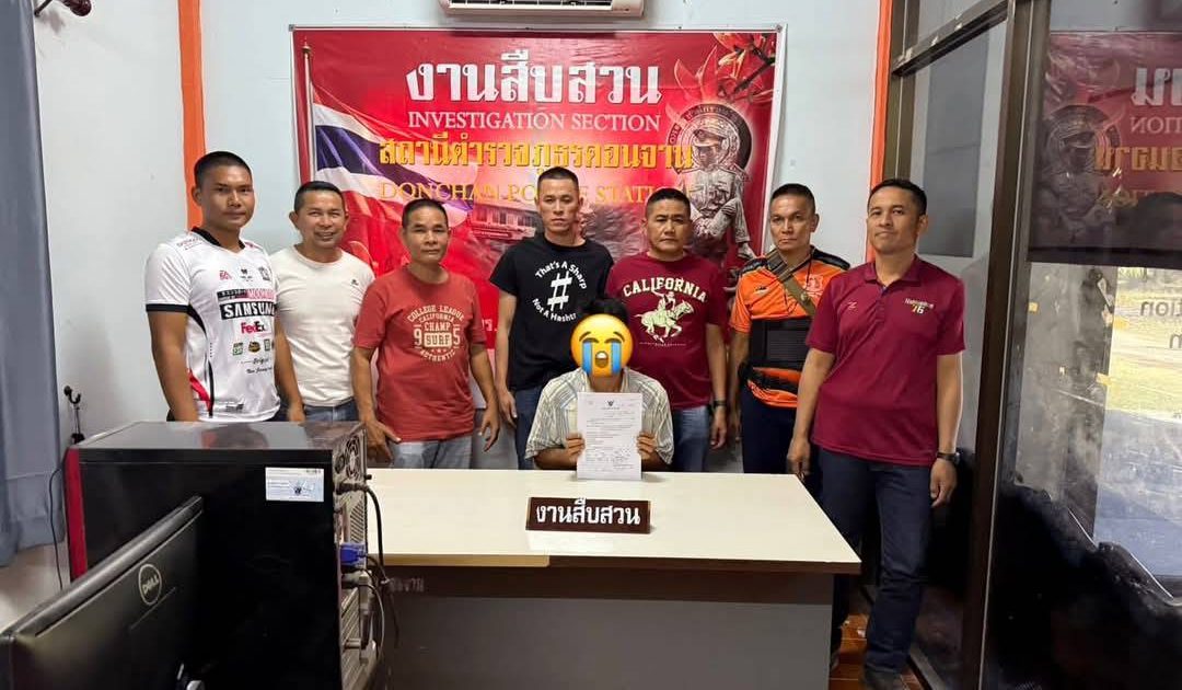 นายเอ นามสมมุติ ผู้ต้องหาตามหมายจับ ซึ่งต้องหาว่าได้กระทำความผิดฐาน “กระทำชำเราแก่เด็กอายุยังไม่เกินสิบสามปีโดยขู่เข็ญด้วยประการใดๆ โดยใช้กำลังประทุษร้ายโดยเด็กนั้นอยู่ในภาวะที่ไม่สามารถขัดขืนได้ ซึ่งเด็กนั้นเป็นผู้อยู่ในความปกครอง หรืออยู่ภายใต้อำนาจด้วยประการอื่นใด” สถานที่จับกุม เพิงพักไม่มีเลขที่ทางทิศตะวันออกบ้านดงเย็น ม.4 ตำบลนาจำปา อำเภอดอนจาน จังหวัดกาฬสินธุ์