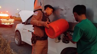 งานปป.-ช่วยเหลือประชาชนรถน้ำมันหมด 14 กุมภาพันธ์ 2568 โดย admin / ข่าวประชาสัมพันธ์,ข่าวกิจกรรม,ข่าวประชาสัมพันธ์,งานป้องกันปราบปราม สายตรวจช่วยเหลือรถยนต์น้ำมันหมด 14 ก.พ.68 เวลา 18.10 น. ภายใต้การอำนวยการของ พ.ต.อ.สรกฤช ราชภักดี ผกก.สภ.ดอนจาน, พ.ต.ท.เนตร ทองเเสง รอง ผกก.ป.สภ.ดอนจาน ,พ.ต.ท.ปรีชา แป้นอ้อย สวป.สภ.ดอนจาน มอบหมายให้ ร.ต.อ.ราเมศ พลเยี่ยม รอง สวป.สภ.ดอนจาน (ร้อยเวร 20) พร้อมกำลัง สายตรวจรถยนต์ สายตรวจจักรยานยนต์ การปฏิบัติหน้าที่ในการให้ความช่วยเหลือรถน้ำมันหมด บริเวณ ถนนสี่เลน กาฬสินธุ์- มุกดาหาร บริเวณบ้านด่านแต้ ต.ดอนจาน อ.ดอนจาน จ.กาฬสินธุ์ จึงได้ให้ความช่วยเหลือ นายวัฒนา ฯ ได้เติมน้ำมันดีเซล ใส่ รถยนต์กระบะและเดินทางต่อไปได้ FacebookFacebookXXLINELine