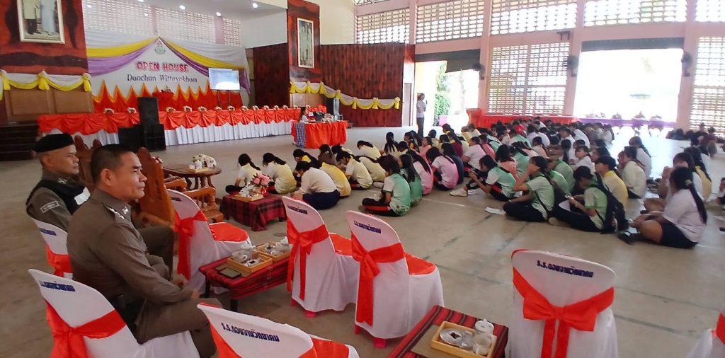 สภ.ดอนจาน 21 กุมภาพันธ์ 2568 เวลา 09.00-11.30 น. พ.ต.อ.สรกฤช ราชภักดี ผกก.สภ.ดอนจาน พร้อมกำลังข้าราชการตำรวจในสังกัด ฝ่ายปกครอง สาธารณสุขและคณะครูโรงเรียนดอนจานวิทยาคม ได้ร่วมกิจกรรมอบรมให้ความรู้ในการป้องกันยาเสพติด และร่วมตรวจสารเสพติดในปัสสาวะ ในนักเรียน จำนวน 452 คน ทั้งหมด ไม่พบสารเสพติด แต่อย่างใด