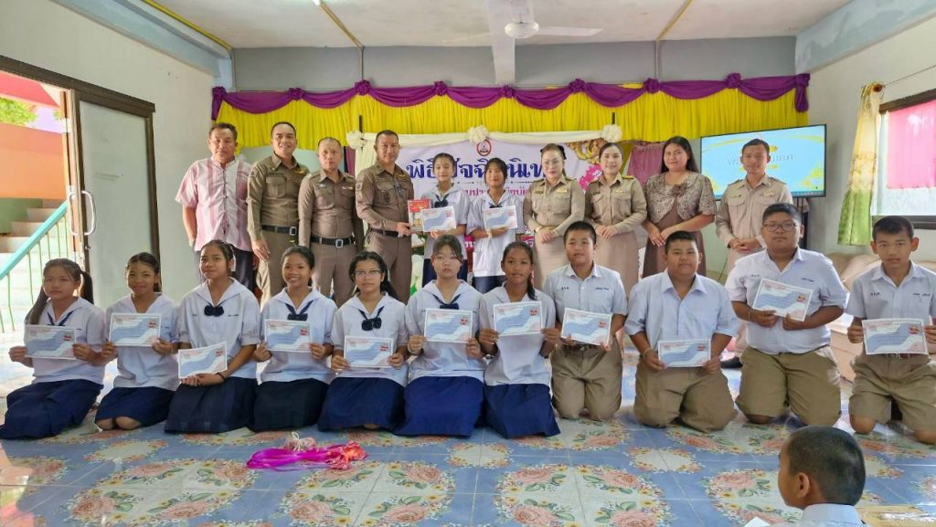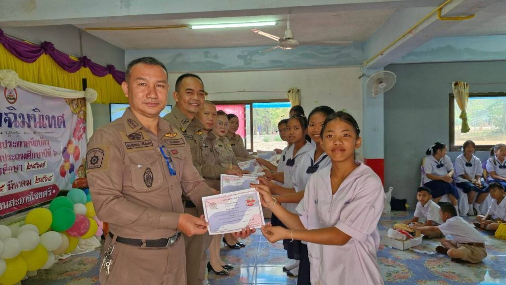 งานอำนวยการ-มอบใบประกาศนียบัตรนักเรียนแดร์ 26 มีนาคม 2568 โดย admin / ข่าวประชาสัมพันธ์,ข่าวกิจกรรม,ข่าวประชาสัมพันธ์,งานอำนวยการ งานอำนวยการ-สภ.ดอนจาน 25 มี.ค.68 เวลา09.00 น.ภายใต้การอำนวยการของพ.ต.อ.สรกฤช ราชภักดี ผกก.สภ.ดอนจาน มอบหมายให้ พ.ต.ท.กฤษฎากรณ์ ศรีสมชัย สว.อก.สภ.ดอนจาน เป็นตัวแทนมอบใบประกาศนียบัตร แก่นักเรียนที่ผ่านหลักสูตรตามโครงการการศึกษาเพื่อต่อต้านการใช้ยาเสพติดในเด็กนักเรียน (D.A.R.E.) และร่วมงานปัจฉิมนิเทศ ณ โรงเรียนสะอาดไชยศรี ต.สะอาดไชยศรี อ.ดอนจาน ได้รับการต้อนรับจากทางโรงเรียนเป็นอย่างดี FacebookFacebookXXLINELine