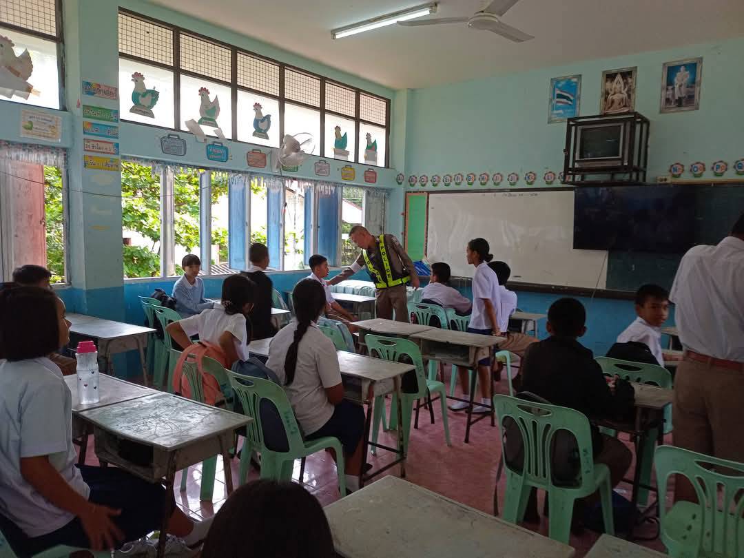 จราจร สภ.ดอนจาน 26 พ.ย.2567 จนท.จราจรออกบรรยายให้ความรู้แก่นักเรียนในเรื่องกฎจราจร ในโรงเรียนในเขตพื