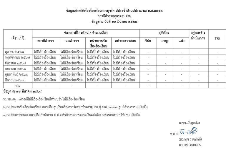 ข้อมูลเชิงสถิติเรื่องร้องเรียนการทุจริต